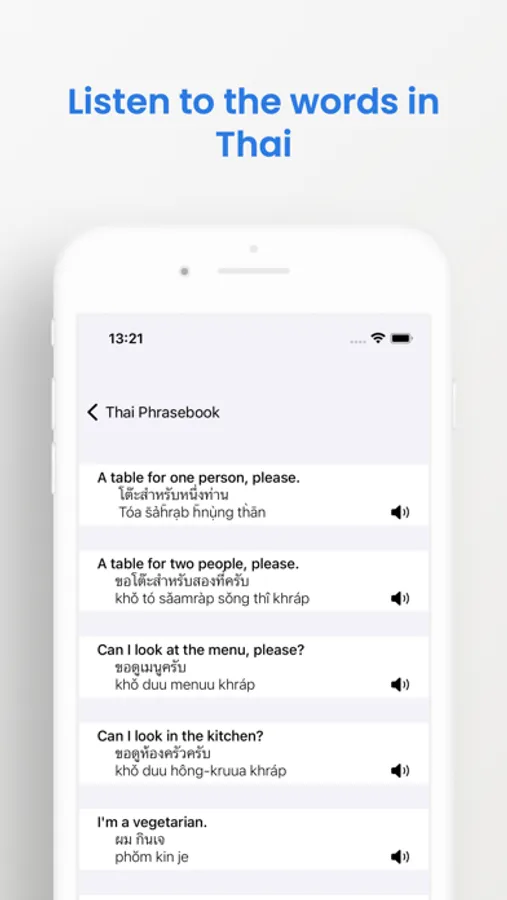 You can listen to each sentence and hear how it is pronounced in Thai so that you can practice the pronunciation and improve your accent.