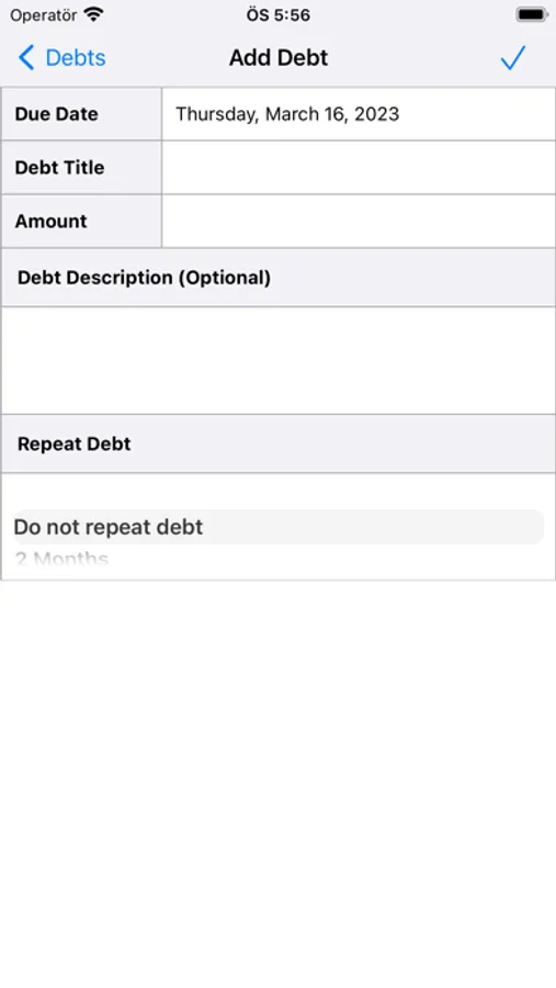 Debt List where you can follow your upcoming debts order by due dates. Also you will be able to see your total upcoming debt amounts month by month.