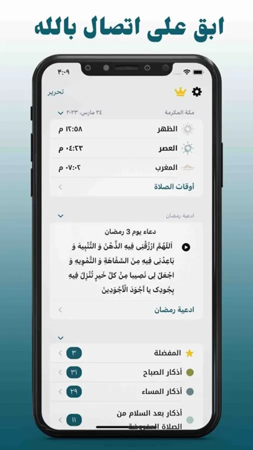 - اذكار تدعم الصوت والتشغيل بالخلفية