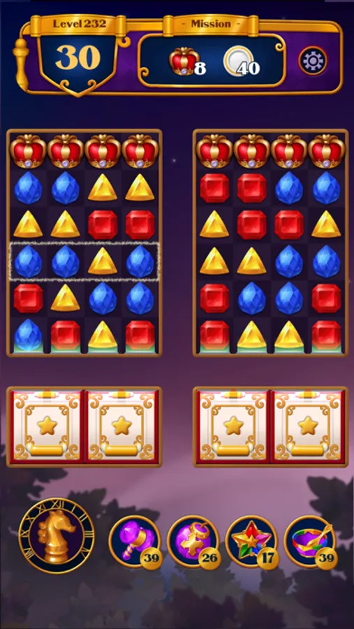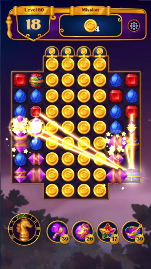 Jewels Castle creates an immersive world that you won't forget with stunning graphics and beautiful music. Explore the beautiful castle and sparkling stars, challenge and clear new puzzles, and unlock numerous rewards!