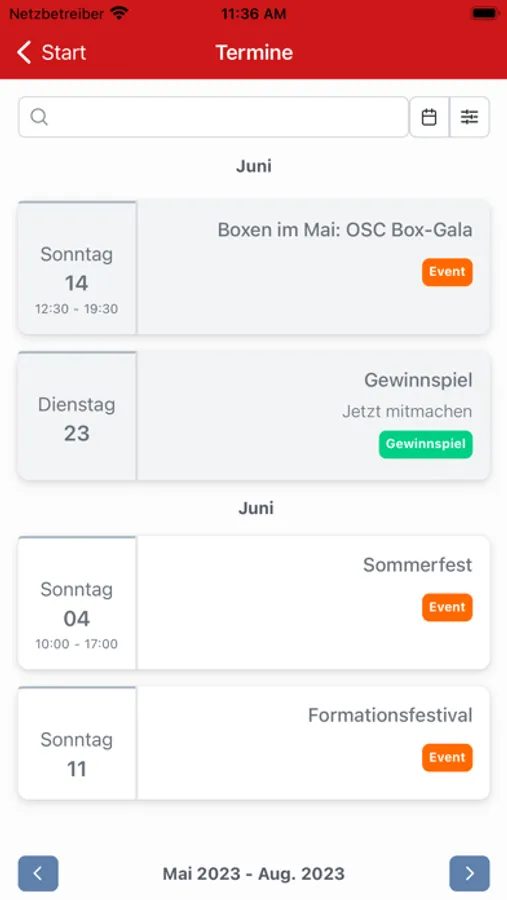 Mit der App verpasst du keine Neuigkeiten mehr. Informiere dich über die neuesten Ereignisse, Veranstaltungen und Wettkämpfe und finde schnell und einfach alle wichtigen Termine in unserem übersichtlichen Kalender.