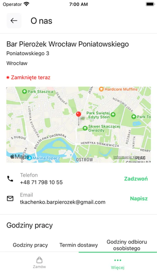 Oprócz zamawiania online aplikacja pozwala sprawdzić: