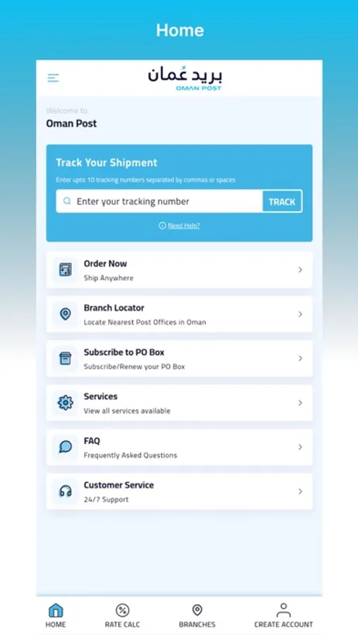 Oman Post is a customer-centric mobile application to meet evolving needs. Register and renew your PO Box in a few steps online with the integrated online payment process. Get live updates on the status of your courier in just a few clicks. Know the nearest branch in the area you live in. Oman Post also calculates the amount payable depending upon its weight, type of courier and the place to be sent.