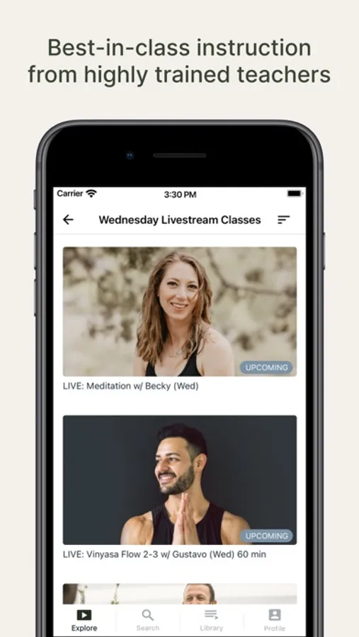 We make it easy to step on your mat whether you have 5 or 50 minutes to practice. Our robust daily live and on-demand schedule includes beginner, intermediate, and advanced classes.