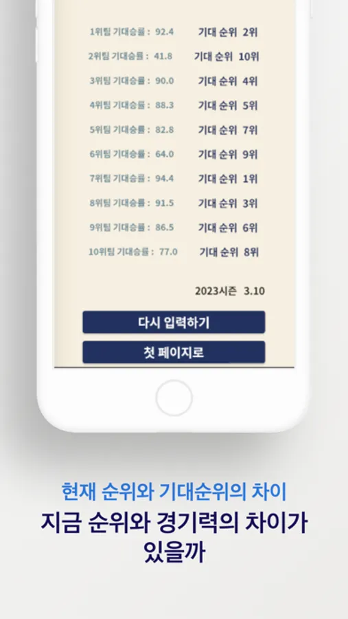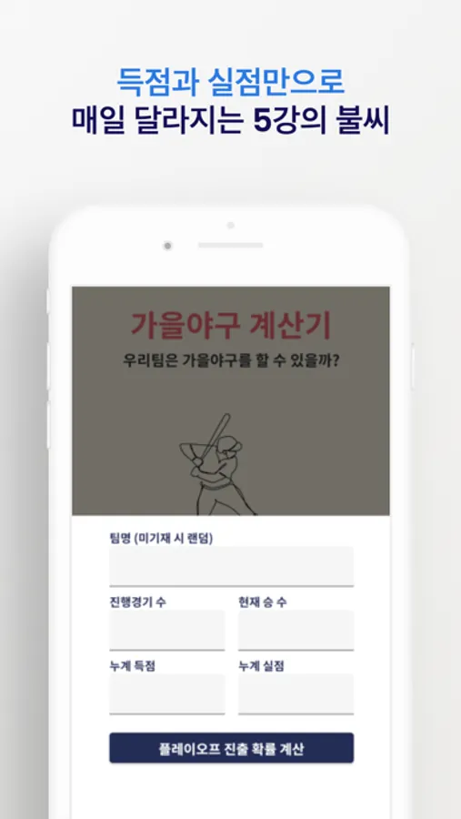 이번 시즌 현재 경기력으로 가을야구 진출 확률을 예측합니다.
