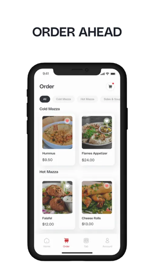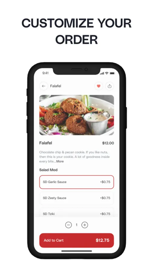 • Mobile ordering from the entire menu, including your favorite hummus, falafel, and kabob - whatever you want!