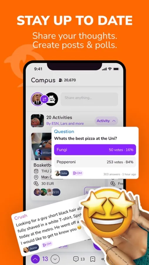 Student campus life: Join house parties, Organize hangouts with friends or strangers, share Uni Rumors, and Meet students in your surrounding!