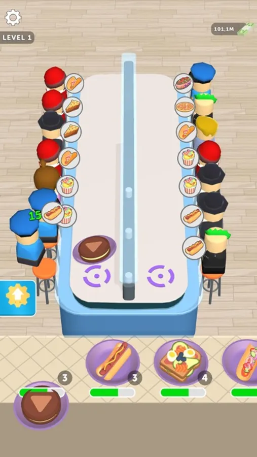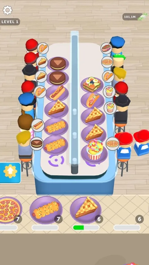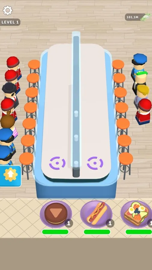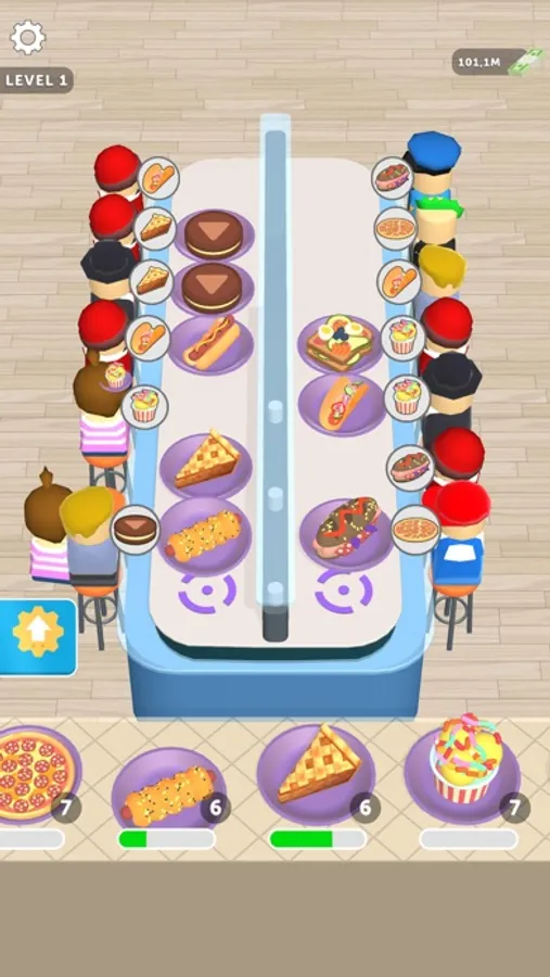 Your goal is:unlock foods, sort them properly, increase your income, and boost the cooking.