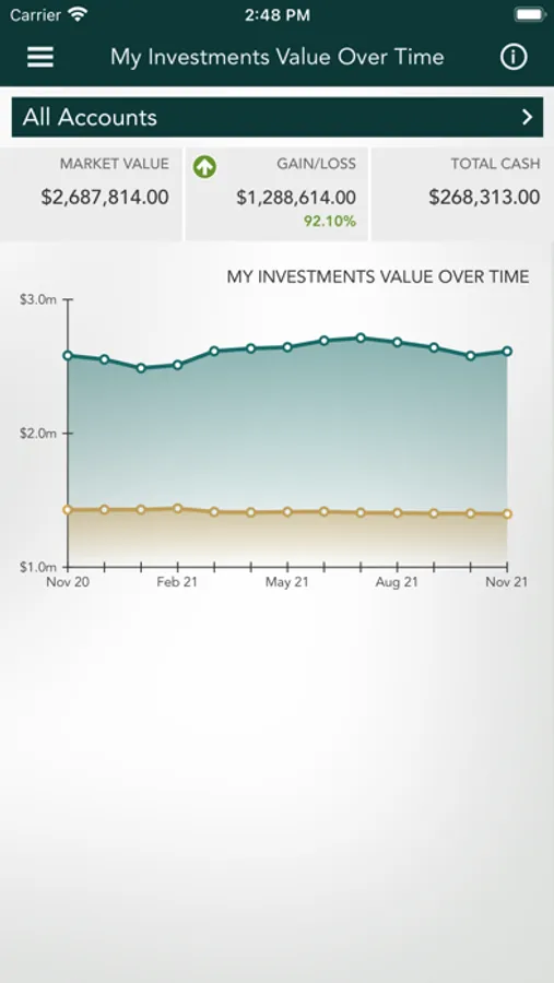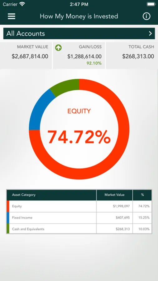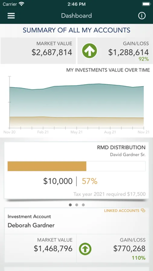 - A dashboard summarizing your investment account(s), market value, and how your money is invested