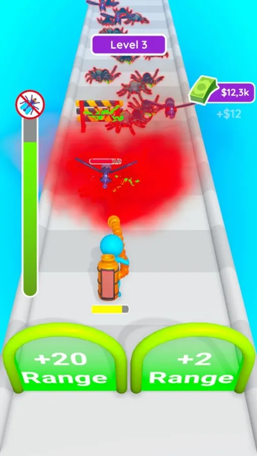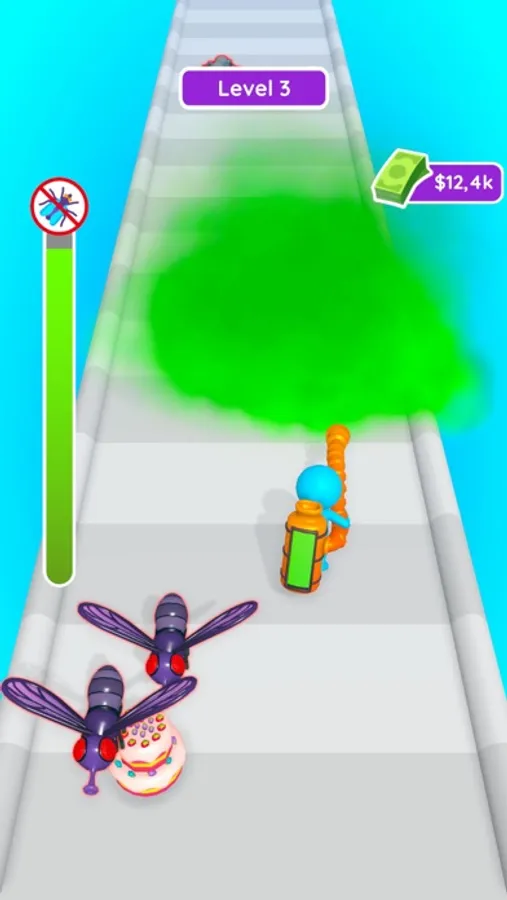 Fly sprayer is a 3d runner game in which we are playing as a character that runs away from mutant insects and sprays gas. We can upgrade our gas using math gates and become stronger.