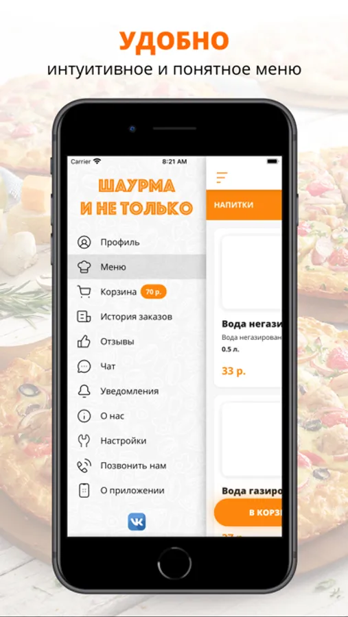 посмотреть меню и совершить онлайн-заказ,