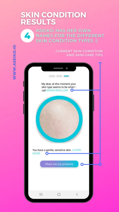 ASEIKO SKIN® is trained to recognize and classify your current skin condition by ANALYSING ONLY A CLOSE-UP OF A PART OF YOUR FACE.