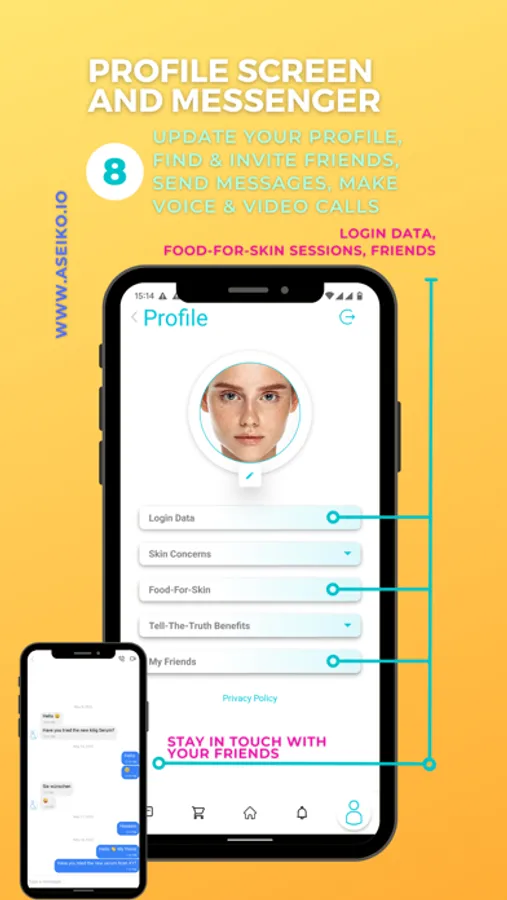 WISH TO GET IN TOUCH WITH YOUR FRIENDS or RECOMMEND THEM A PRODUCT? Easily done with the integrated IN-APP-MESSENGER of ASEIKO SKIN®.