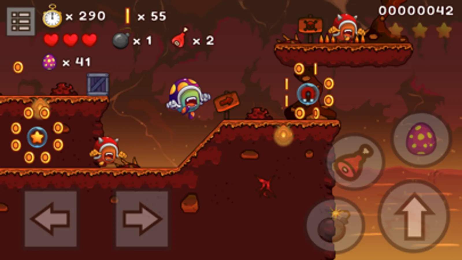 As you progress through the game, you'll encounter a variety of monsters, each with their unique abilities and challenges. You'll need to use your wits and reflexes to overcome them all. But fear not, because Bino has an arsenal of power-ups and upgrades at his disposal, including the ability to eat meat and become invincible for a short period of time.