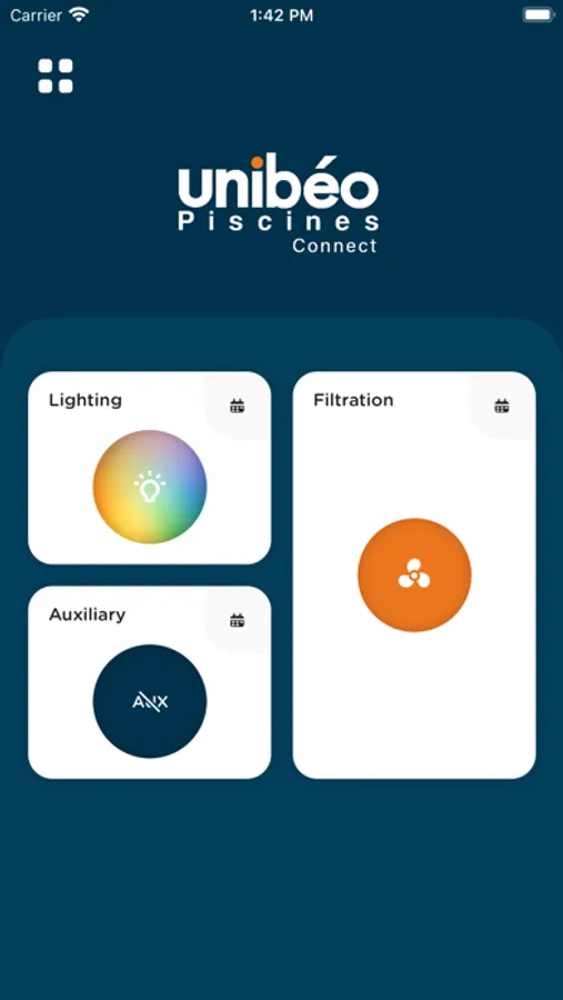 Unibéo Connect is your new technical room control application. It allows you to control, by bluetooth, the main functions of your swimming pool: filtration pump program, light control.