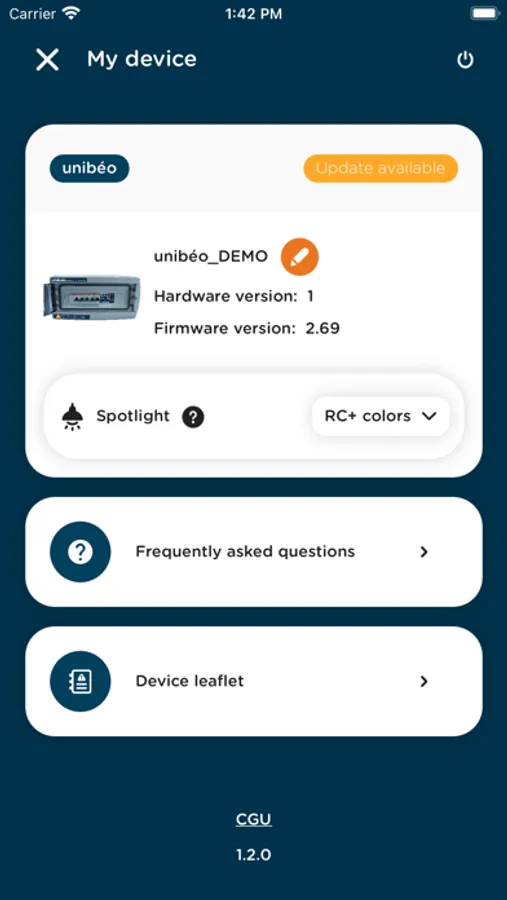 To use this app, you need a CCEI’s Unibéo Connect electrical cabinet.