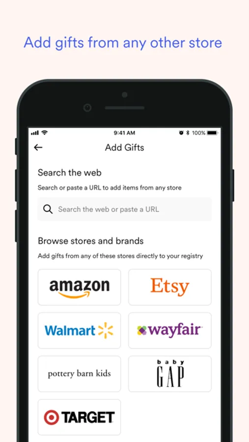 • Add gifts from any other store: Yup, ANY other store, big or small. We make it easy for all your gifts to live in one place so your loved ones can shop with ease.