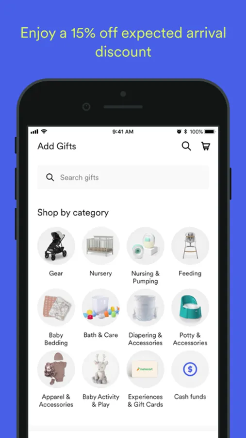 • Enjoy a 15% expected arrival discount: Use your discount 60 days before your little one’s arrival and 30 days after, so you have absolutely everything you need, when you need it.