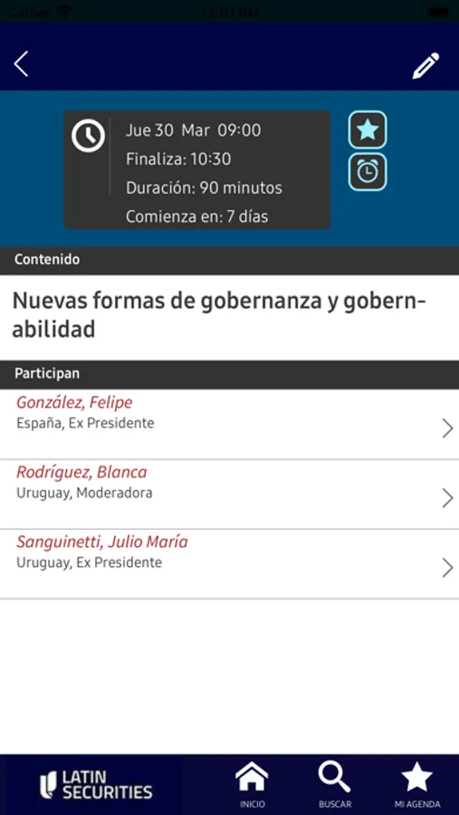 La aplicación móvil 'Latin anual meeting 2023' cuenta con información sobre el evento que se realizara del 29 al 31 de marzo en el hotel Enjoy Punta del Este. En esta, podrá encontrar la agenda por día con el detalle de las charlas y sus expositores; eventos sociales y deportivos, entre otros.