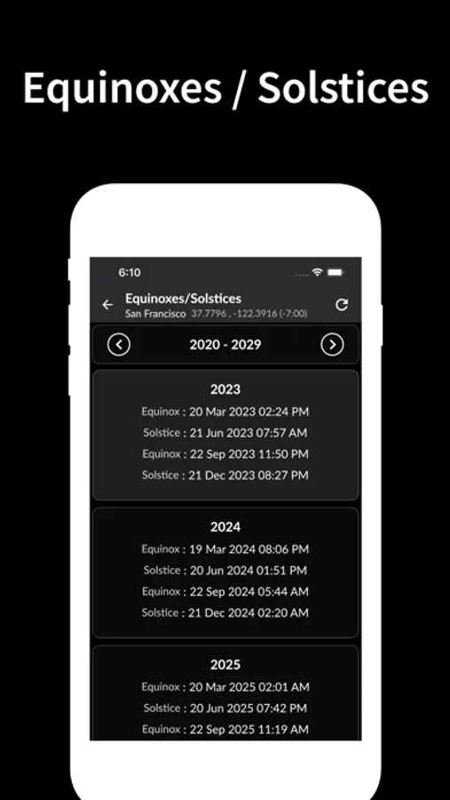 - Solstices and Equinoxes;
