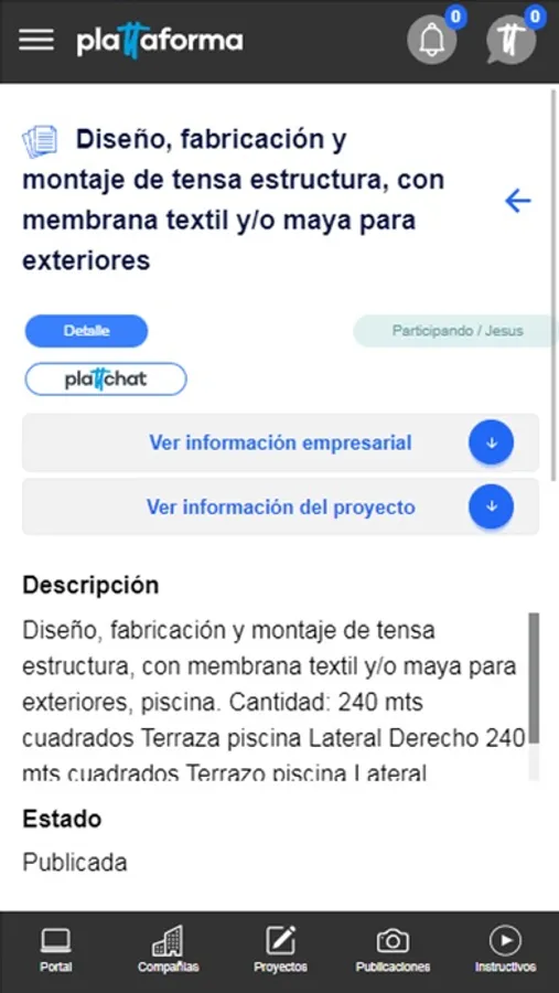 Plattaforma, es una herramienta digital enfocada a crear procesos administrativos más rápidos y eficientes en el área de la construcción, servicios e instalaciones, vinculando las compañías que crean proyectos, licitaciones y cotizaciones (comunidad de demanda) y las compañías que crean catálogos, suben productos y envían sus ofertas (comunidad oferta), para suplir las necesidades de los proyectos.