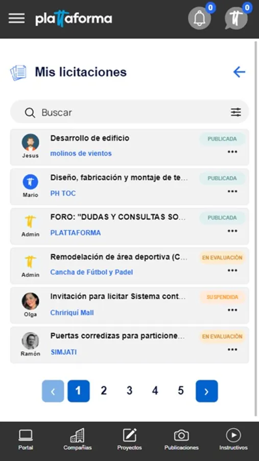 Las compañías tipo proveedor (oferta), tienen acceso a un portal abierto de licitaciones y cotizaciones, en el cual podrán participar y enviar sus propuestas, además de crear un perfil visual y atractivo, que se adapte a las necesidades de las empresas tipo demanda.