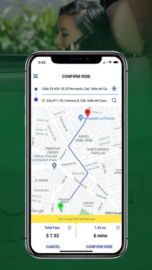 When a passenger creates a service, the driver can see the name, photo, how long they have been traveling with Nubeli and rating.