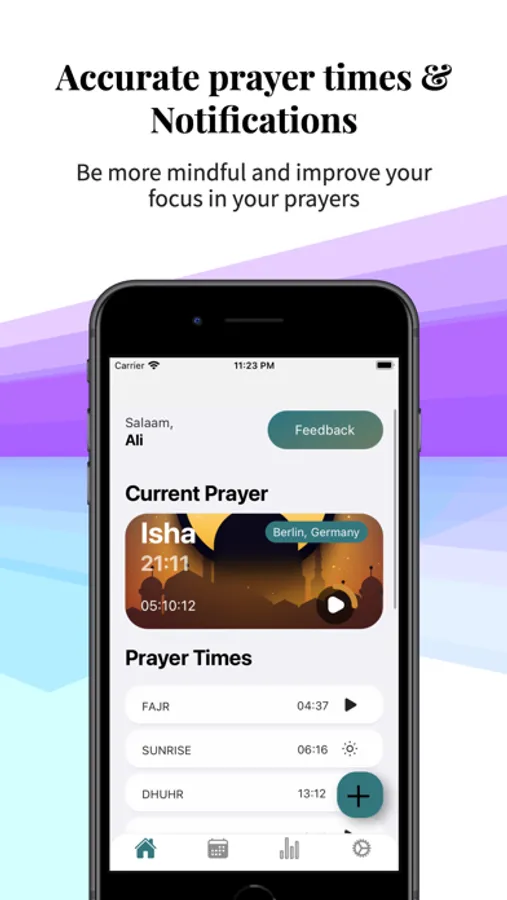 Stay on top of your daily prayers and improve your spiritual practice with our iOS app designed for Muslims. With our app, you can easily track your prayer times and get notified when it's time to pray. Plus, you can journal your thoughts and track your prayer quality to improve your focus and overall experience.