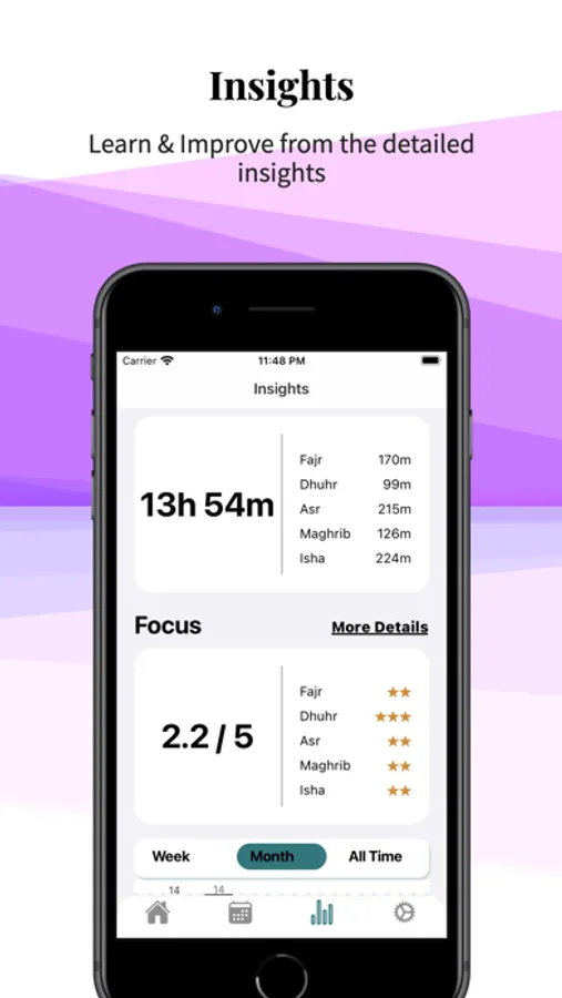 Our app features insightful statistics and graphs that provide you with valuable insights into your prayer habits. You can track the time you took to pray, how focused you were, and any distractions that you encountered. With this information, you can identify patterns, learn, and improve your prayer quality over time.