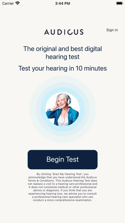 By clicking 'Start My Hearing Test' you acknowledge that you have understood the Audicus Terms & Conditions. This Audicus Hearing Test does not replace a visit to a hearing care professional and it does not constitute professional advice or diagnosis. If you think that you are experiencing hearing loss, we advise you to consult a professional hearing care specialist who can conduct a more comprehensive examination.