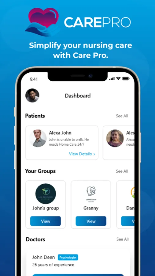 Care Pro is the ultimate nursing companion, designed to help you provide the best care possible to your patients. Care Pro streamlines your day-to-day tasks, making it easier for you to focus on what matters most - your patients. With Care Pro, you can quickly and easily manage all your patients and maintain their medical records, all from the convenience of your mobile device. Plus, with the group chats, you can be in touch with patient's family members 24-7. Download Care Pro today and discover how easy nursing can be.