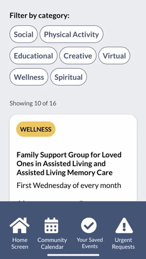 • View your community's calendar. Stay up-to-date with upcoming events - from social gatherings to support groups and more.