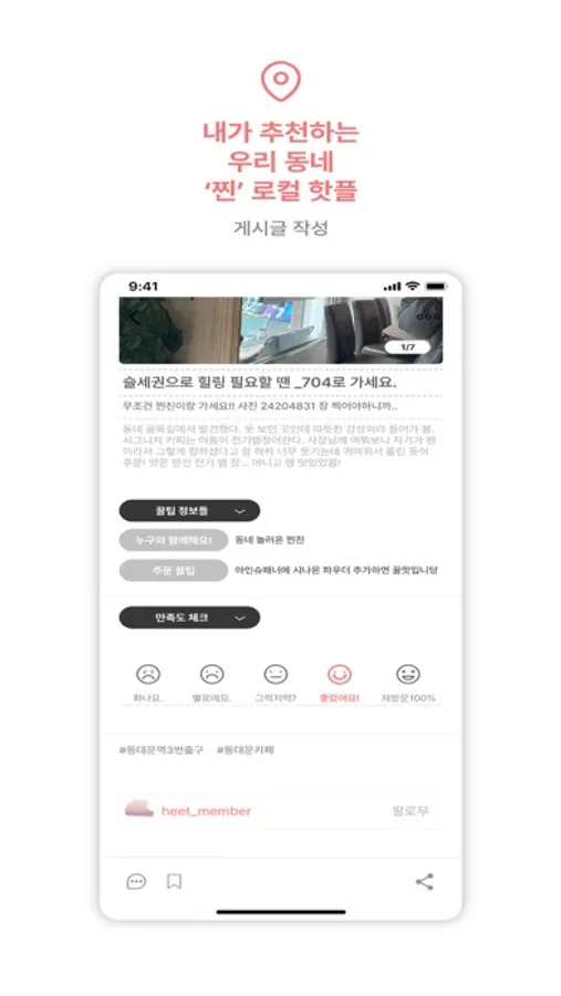 위치 인증을 하고 동네에 관한 게시글을 작성하면