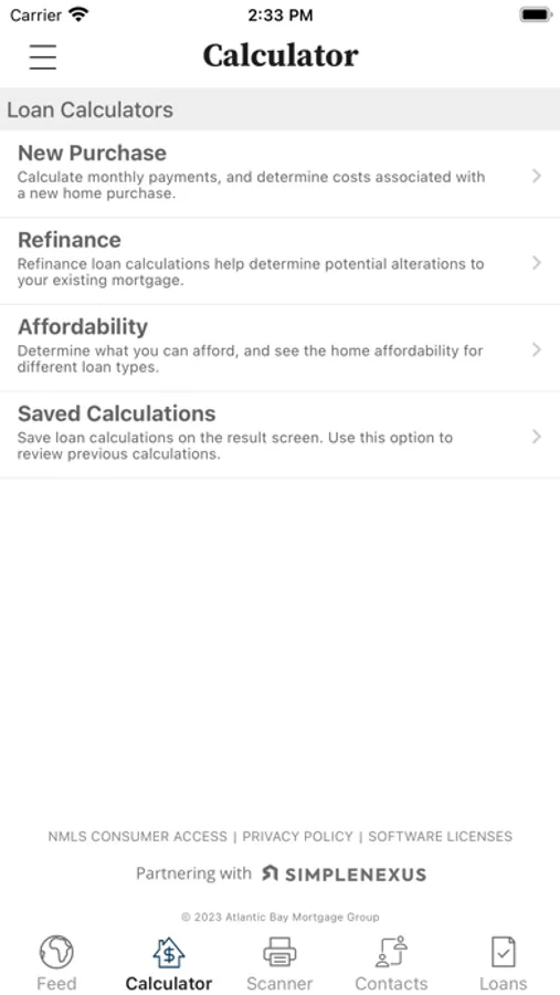 The calculations provided by the app are useful in giving you an idea of what homeownership might mean for you. However, please be sure to contact your Atlantic Bay Mortgage Banker for a customized solution tailored to your specific financial situation, needs, and goals. Your Mortgage Banker can also assist you with any questions you have about your loan and the loan approval process.