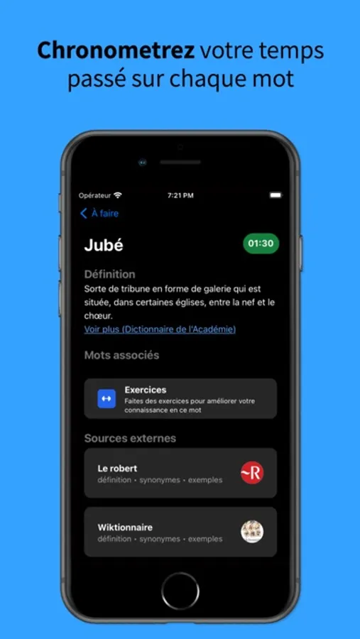 Mot vivant vous permet simplement de travailler votre vocabulaire actif avec ces fonctionnalités: