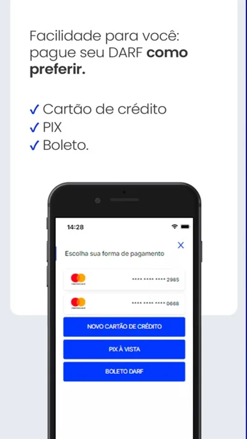 Sem ficar preso ao pagamento de boletos e bancos integrados. Pague seus DARFs como preferir: boleto, PIX ou cartão de crédito em até 12x.