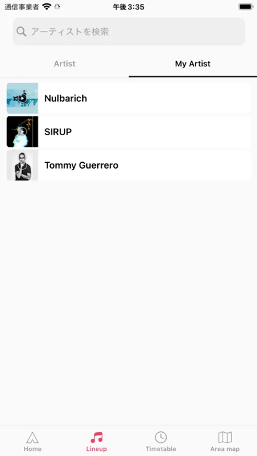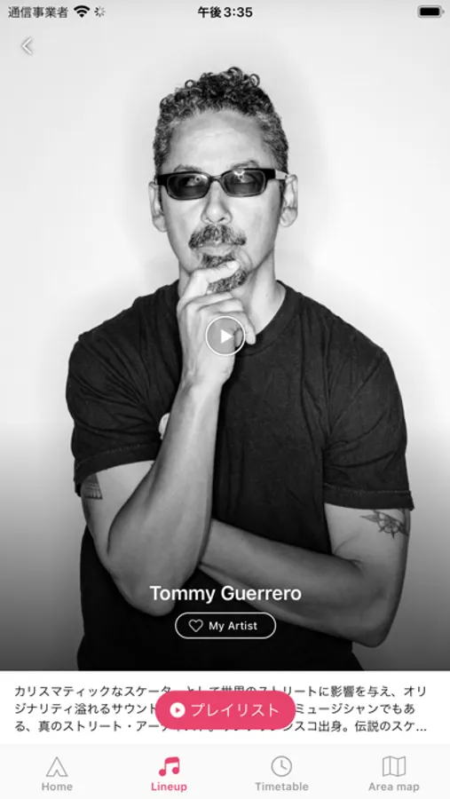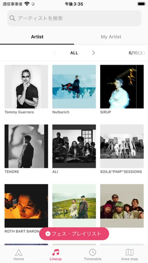 アーティストの出演日程に加え、それぞれのアーティストのプレイリストを試聴できるなどの機能を搭載!