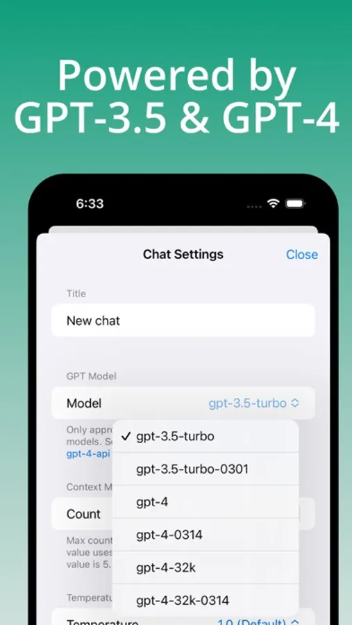 This app is powered by ChatGPT API and GPT-4 provided by OpenAI's API. This app is independently developed, and not affiliated, endorsed, or sponsored by OpenAI. ChatGPT is OpenAI's product name, and ChatGPT API is a public API by OpenAI. ChatGPT, ChatGPT API, and GPT-4 are all legal assets of OpenAI. This app just uses mentioned features by using their API.