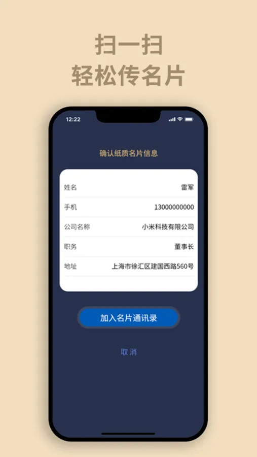 您可以扫二维码添加好友,也可以扫纸质名片添加联系人,给您带来全新的使用体验。