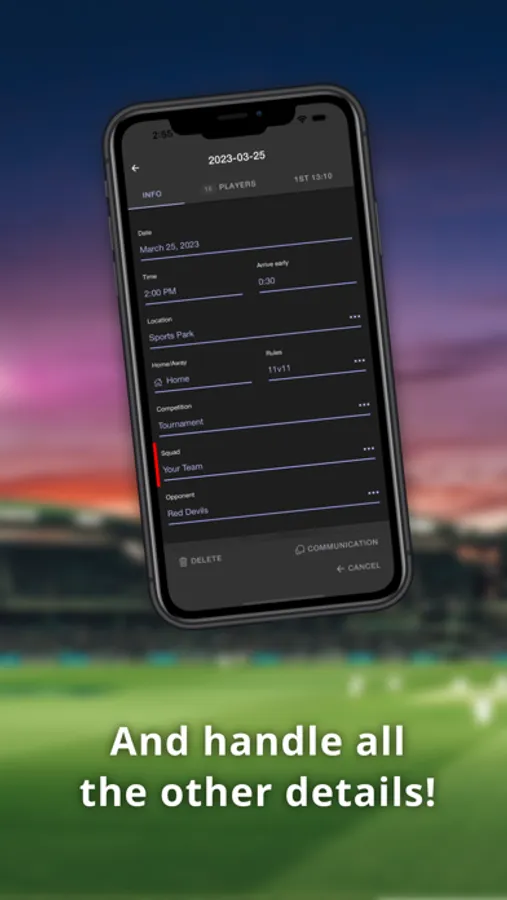 ● Create different sets of game-time rules for different competitions (i.e. number of players on the field, duration of the games, etc.)
