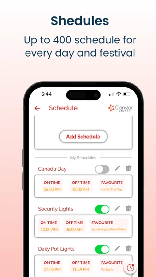 The Canstar Lights app controls smart indoor and outdoor Canstar lights. Our lights are low-voltage LEDs that can be controlled through the Canstar intelligent controller and APP. A single product can be used for multiple purposes. Canstar App has inbuilt features to use your lights as Luxurious Architectural Lights | Smart Pot Lights | Christmas Lights | Festival Lights | Game Lights | Security lights and much more. Our technology provides year-round lights and inbuilt Christmas, Halloween, Canada Day, Easter, and all other Canadian festival lights.