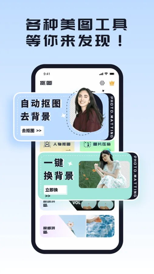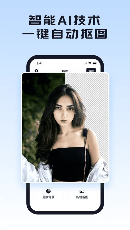 一键抠图,是一款超方便的抠图p图处理工具!无需使用PS,不需要掌握复杂的P图操作技术,轻松实现抠图效果,数秒抠出需要的人物,各种背景供你选择。
