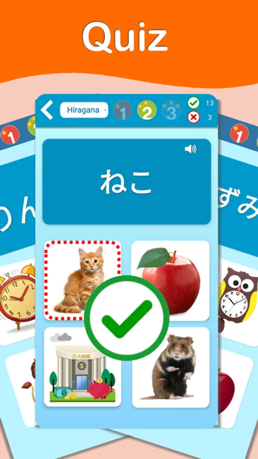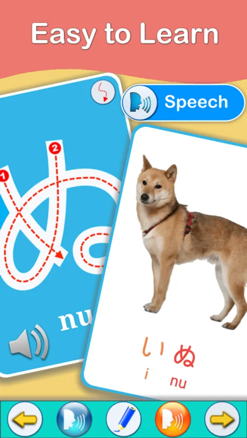 The best way to get started learning the Japanese Kana, which contains 46 Interactive flashcards, each card are voice-enabled.
