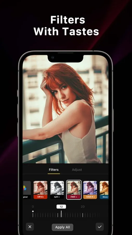 • Filter: film, cyber, vivid, B&W... all adjustable and trendy