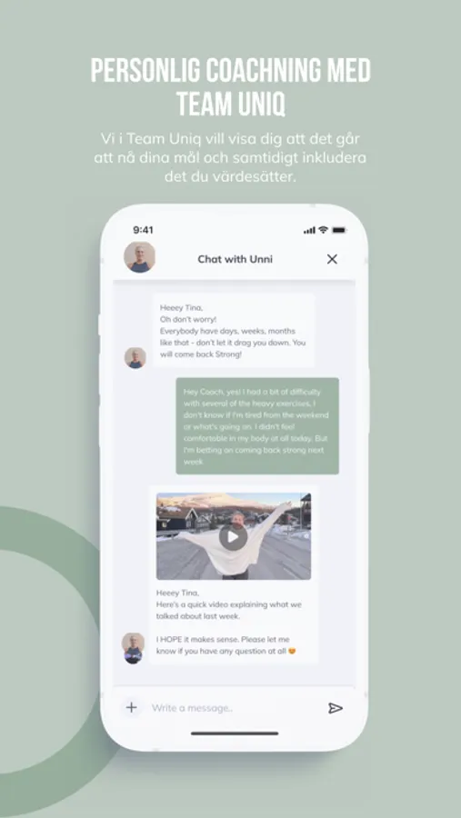 Vi i Team Uniq vill visa dig att det går att nå dina mål och samtidigt inkludera det du värdesätter. Oavsett om ditt mål är viktnedgång, tona och forma kroppen eller enbart vill lära dig leva hälsosamt så kan du nå dina mål utan att behöva ta bort en god middag ute med vännerna. Via appen får du personlig coaching, skräddarsydda kost- och träningsplaner, goda recept, möjlighet att mäta och följa dina framsteg, synkronisera med Apple Hälsa, chatta med dina coacher och mycket mer!