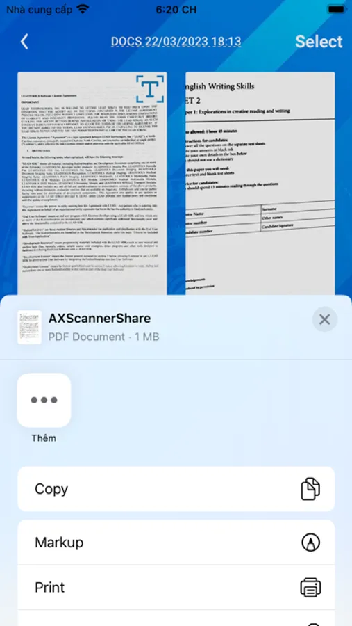AXScanner là ứng dụng quét và lưu trữ tài liệu thông minh. Ứng dụng có thể quét tài liệu, ảnh với bộ lọc sắc nét với chất lượng cao. Bạn có thể tạo ra pdf, pdf searchable hoặc lấy ra text với ocr từ tài liệu được quét. Ứng dụng có thể giúp bạn chia sẻ tài liệu một cách dễ dàng hoặc tổ chức lưu trữ theo thư mục một cách thuận tiện.