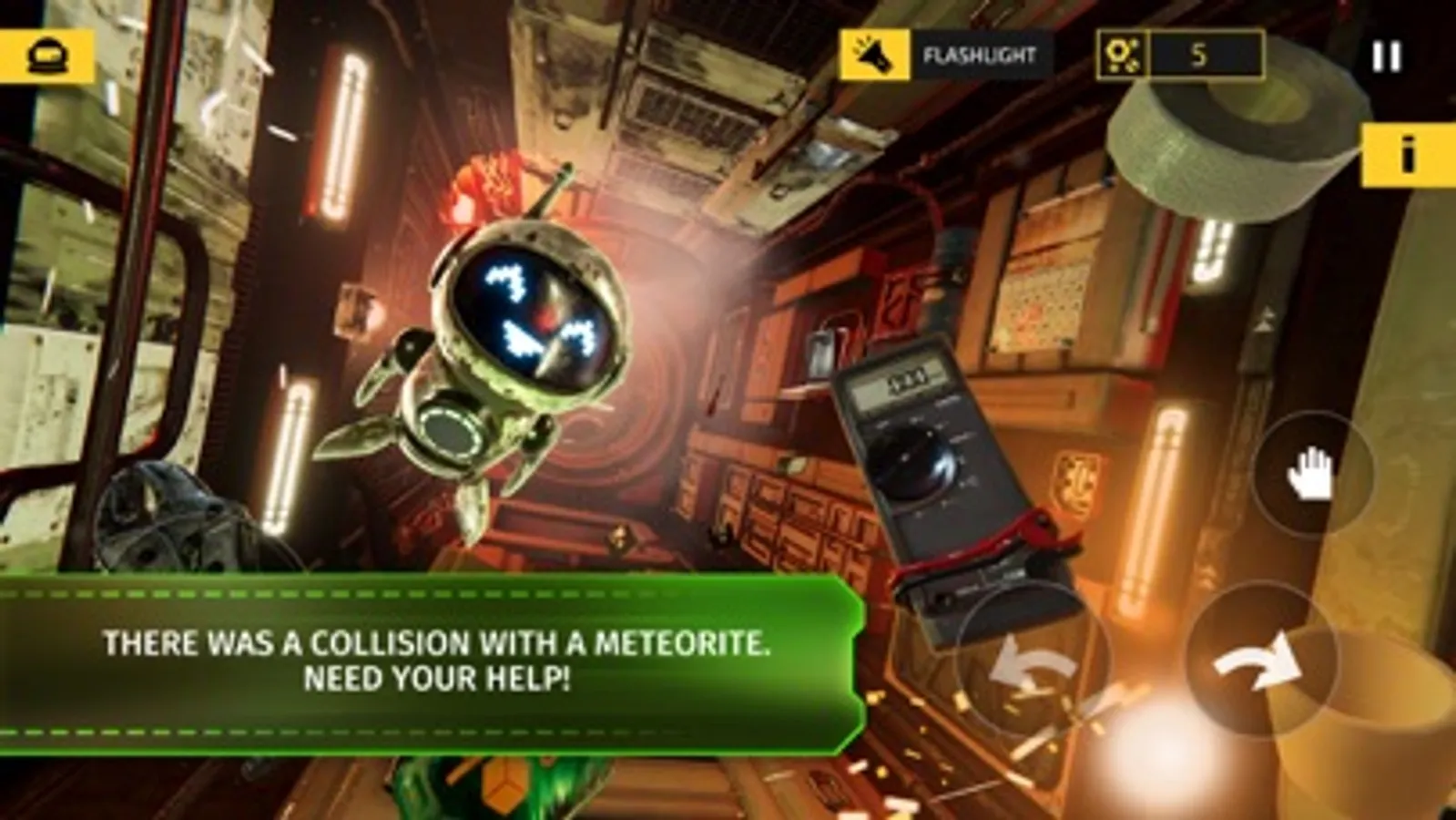 There is a highly intelligent robot assistant at the station. This rust bucket must be a little crazy, but he's the only one who can save you.