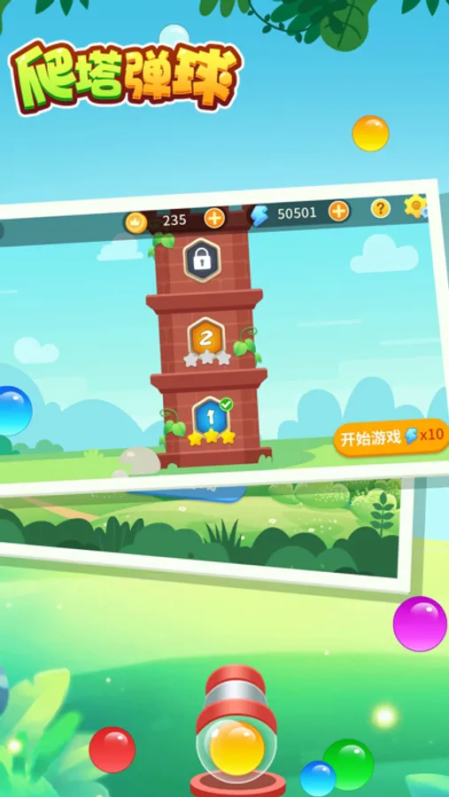 发射相同颜色的球,击毁相应颜色的防御,突破塔楼登顶。