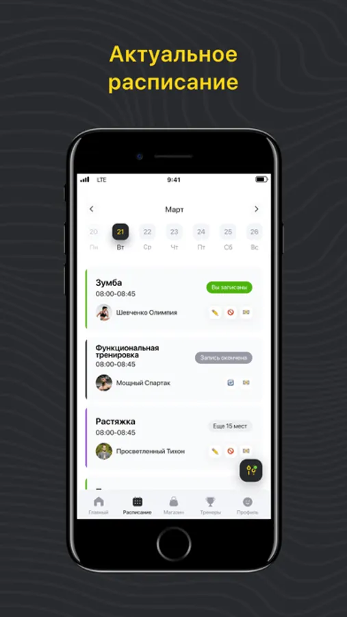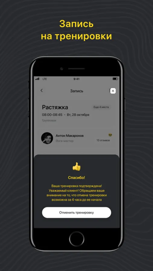 Получать PUSH-уведомления о предстоящих тренировках, новостях и акциях клуба;