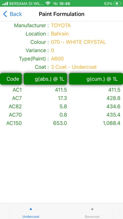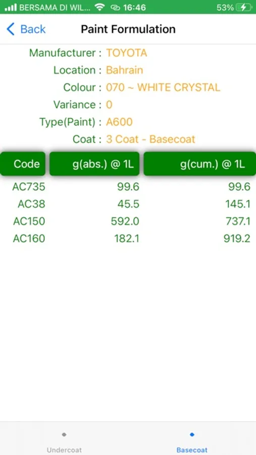 Simple yet powerful worldwide comprehensive car paint formulation collections